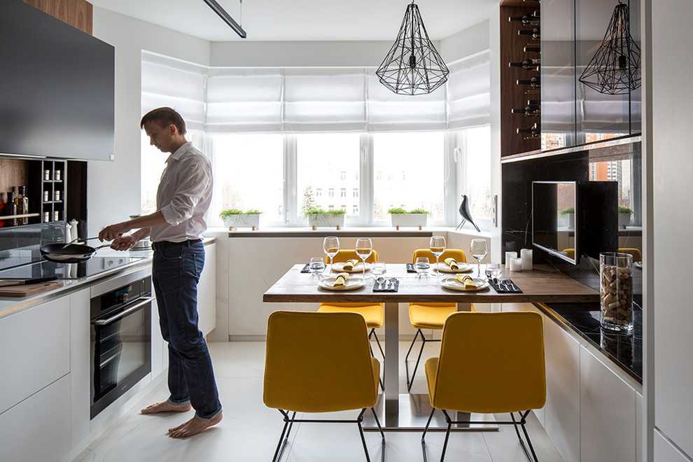- Планировка кухни должна учитывать размеры столовой зоны, точнее правила эргономики: