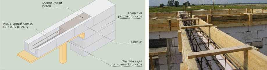 Чтобы избежать существенной потери тепла, в местах стыка бетона и газосиликата применяется несъемная опалубка. Для ее создания принято использовать заводские U -блоки со стандартной коробчатой формой. Сам процесс возведения конструкции состоит из следующих этапов: