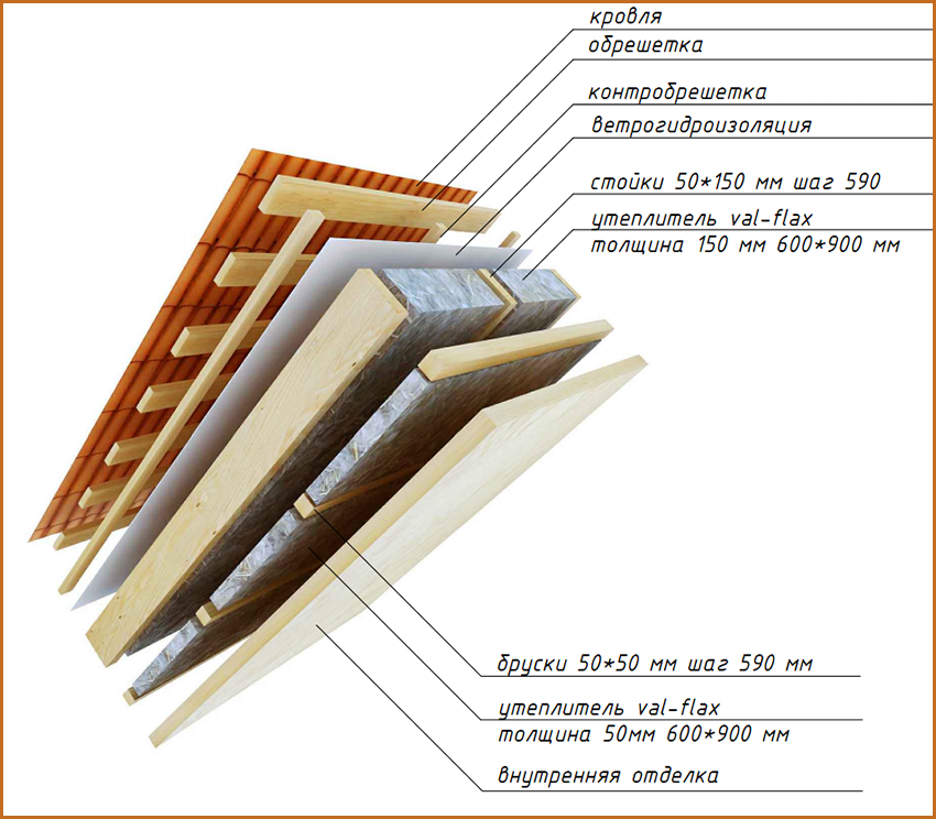 Между минеральной ватой и обшивкой должен быть вентиляционный зазор