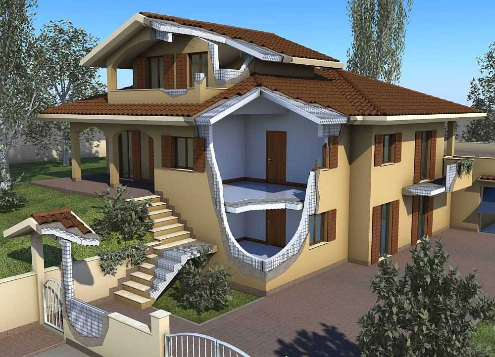 Сооружаемый по прогрессивной технологии, бетонный каркас дома представляет собой прочную конструкцию, состоящую из: