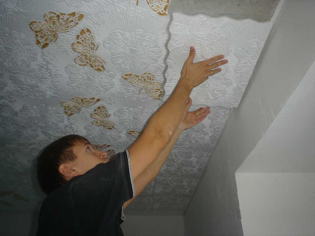 Монтаж плитки на бетонный потолок