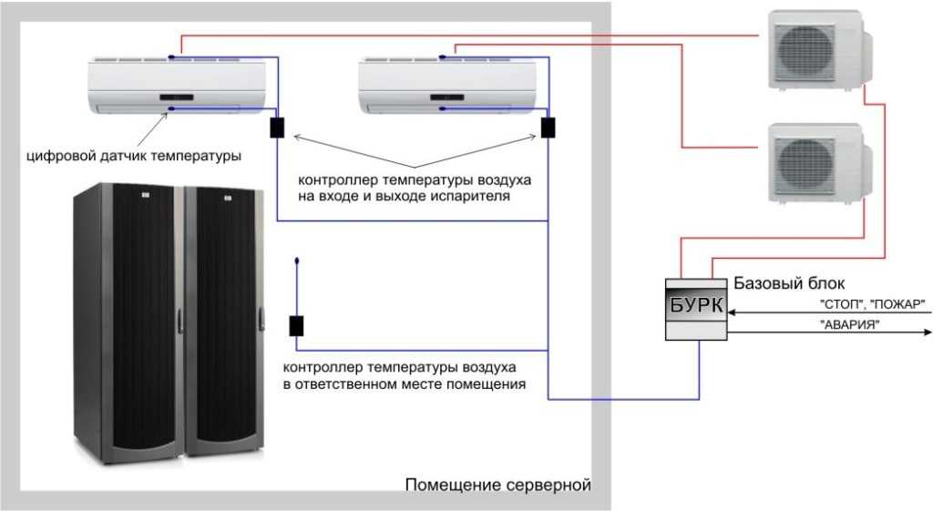 К температурному режиму в серверной комнате предъявляются строгие требования, выполнение которых возможно только при наличии двух и более кондиционеров