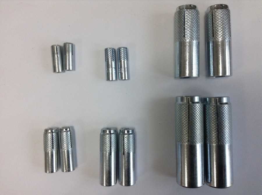 В них есть отверстие с внутренней резьбой (его форма конусовидна), а также прорезями (в основном продольной формы), которые были подвергнуты специальное обработке. Они необходимы для того, чтобы при ударе были сформированы т.н. распорные плечи.
