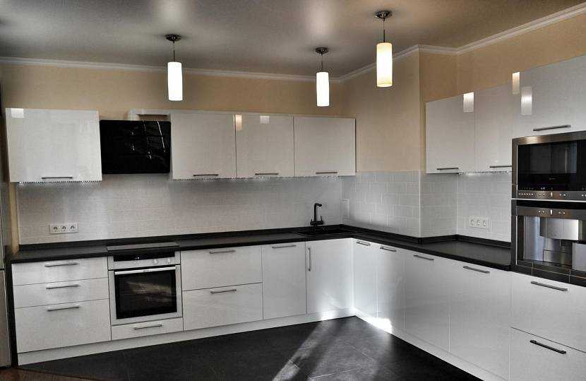 Многое зависит от роста самой хозяйки и высоты напольных модулей. Согласно стандарту, рабочая столешница находится на расстоянии 850 мм от пола. Этот параметр можно регулировать высотой цоколя, стандарт которого – 100 мм.