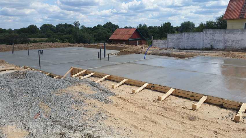 - Заливка бетоном, трамбовка слоя, выжидание времени высыхания и полного набора прочности.