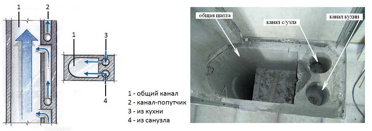 В этом случае вентиляционные шахты не соединяются между собой, улучшается тяга внутри трубы, а в дом не поступает загрязнённый воздух из соседских квартир. Другая разновидность такой схемы вентиляции в хрущёвке – из каждой квартиры отдельные каналы ведут к крыше, где соединяются в единую трубу, которая выводит воздушные массы на улицу.