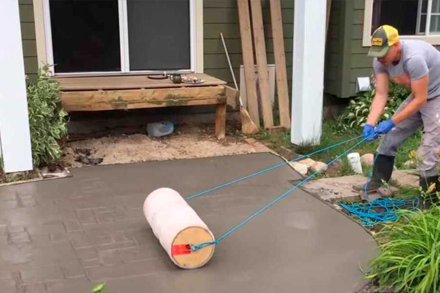 Это вариант обработки арт-бетона, применяемый при отделке стен или при изготовлении декоративной плитки для оформления дорожек. Используются гибкие формы (матрицы), или ручные валики с выпуклым рельефом для накатки рисунка.