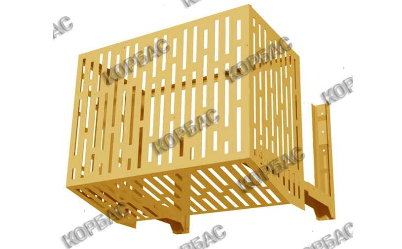 Корзина. Защищает блок с трех сторон — по бокам и спереди. У заказчика есть возможность выбрать типоразмер для любого типа кондиционера. Исполнение также варьируется.