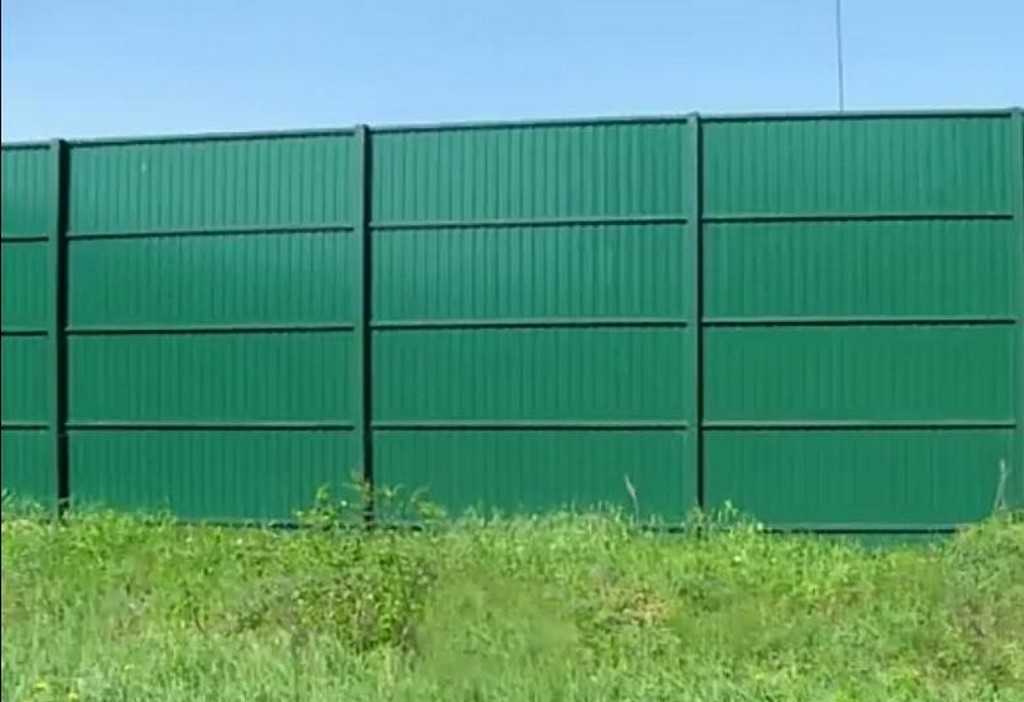 Забор из профлиста с металлическими столбами, выполненный качественно радует глаз долгие годы